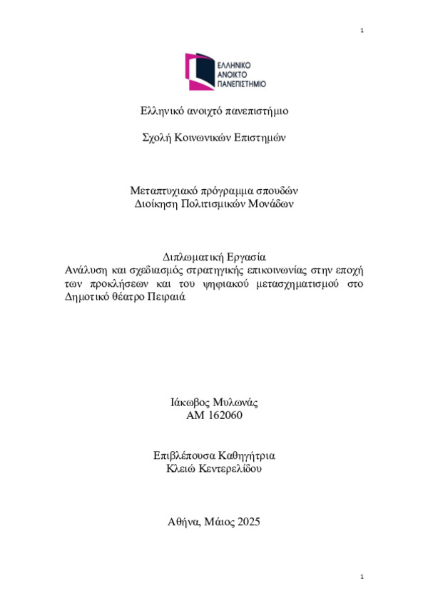 Analysis and planning of strategic communication in the era of challenges and digital transformation at the Municipal Theater of Piraeus (Αγγλική)