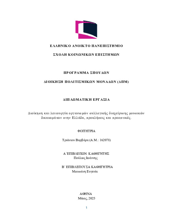 Διοίκηση και λειτουργία οργανισμών συλλογικής διαχείρισης μουσικών δικαιωμάτων στην Ελλάδα, προκλήσεις και προοπτικές.