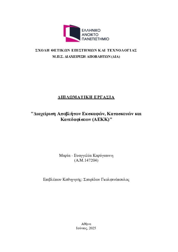 - Απόβλητα Εκσκαφών, Κατασκευών και Κατεδαφίσεων (ΑΕΚΚ), Συλλογικό Σύστημα Εναλλακτικής Διαχείρισης (ΣΣΕΔ), Στοιχεία Διαχείρισης Αποβλήτων (ΣΔΑ), κυκλική οικονομία