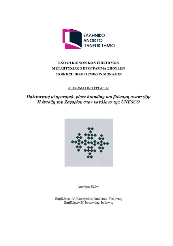 Περιγραφή: Πολιτιστική κληρονομιά, place branding και βιώσιμη ανάπτυξη H ένταξη του Ζαγορίου στον κατάλογο της UNESCO.pdf (pdf) Book Reader