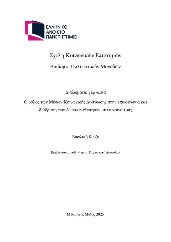 - Όπερα | Ψηφιακή στρατηγική επικοινωνίας | Πολιτιστικοί οργανισμοί | Πολιτιστική επικοινωνία | Κοινό λυρικής τ΄έχνης