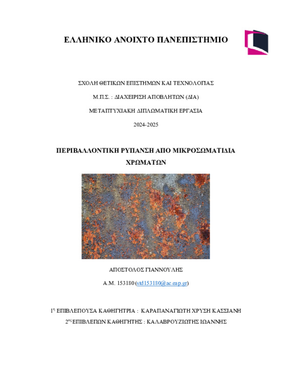 Περιγραφή: ΑΠΟΣΤΟΛΟΣ ΓΙΑΝΝΟΥΛΗΣ-ΣΥΝΟΠΤΙΚΟ ΑΡΧΕΙΟ ΔΙΠΛΩΜΑΤΙΚΗ ΕΡΓΑΣΙΑΣ-ΠΕΡΙΒΑΛΛΟΝΤΙΚΗ ΡΥΠΑΝΣΗ ΑΠΟ ΜΙΚΡΟΣΩΜΑΤΙΔΙΑ ΧΡΩΜΑΤΩΝ.pdf (pdf) Book Reader