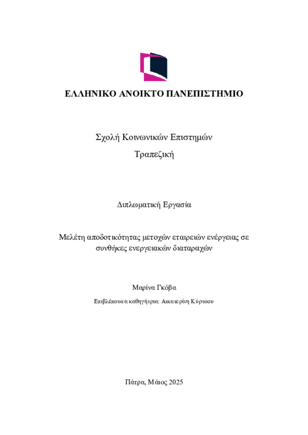 Με την παρούσα διπλωματική εργασία εξετάζεται η αποδοτικότητα μετοχών εταιρειών ενέργειας κατά τη διάρκεια ενεργειακών κρίσεων, με απώτερο σκοπό την αξιολόγηση της επενδυτικής τους συμπεριφοράς. Η μελέτη χωρίζεται σε δύο κύρια κεφάλαια.