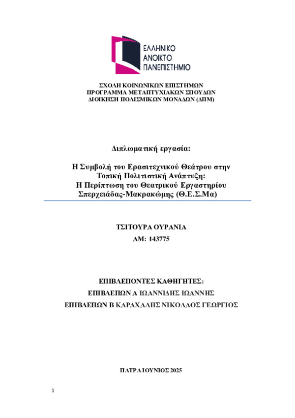 Η Συμβολή του Ερασιτεχνικού Θεάτρου στην Τοπική Πολιτιστική Ανάπτυξη: Η Περίπτωση του Θεατρικού Εργαστηρίου Σπερχειάδας-Μακρακώμης (Θ.Ε.Σ.Μα) - Identifier: 233159