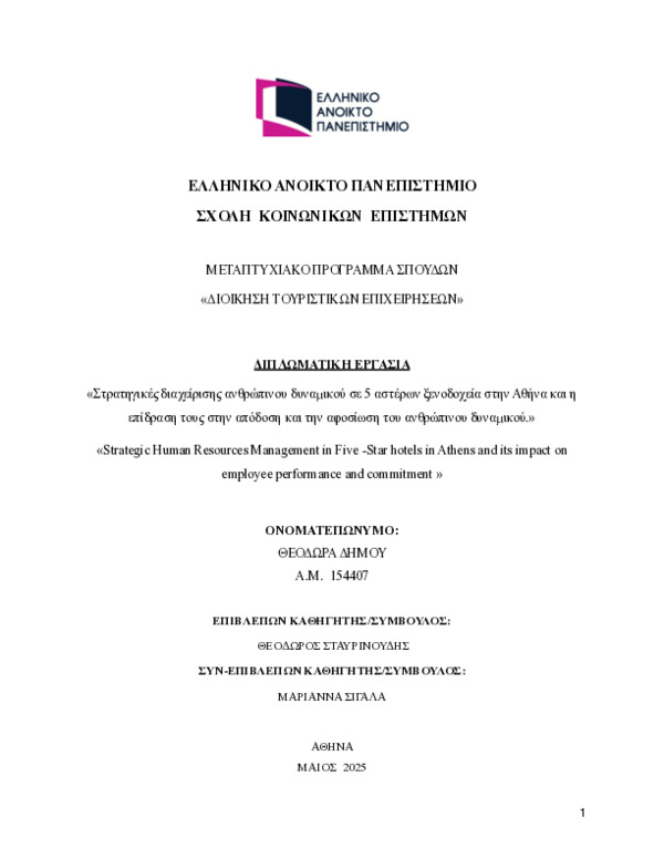 - ΣΤΡΑΤΗΓΙΚΗ ΔΙΑΧΕΙΡΗΣΗ ΑΝΘΡΩΠΙΝΟΥ ΔΥΝΑΜΙΚΟΥ | ΑΠΟΔΟΣΗ ΕΡΓΑΖΟΜΕΝΩΝ | ΔΕΣΜΕΥΣΗ ΕΡΓΑΖΟΜΕΝΩΝ | ΚΛΑΔΟΣ ΦΙΛΟΞΕΝΙΑΣ | ΞΕΝΟΔΟΧΕΙΑ 5 ΑΣΤΕΡΩΝ