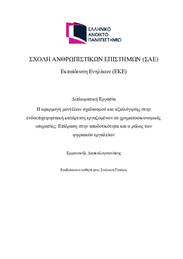 Η εφαρμογή μοντέλων σχεδιασμού και αξιολόγησης στην ενδοεπιχειρησιακή κατάρτιση εργαζομένων σε χρηματοοικονομικές υπηρεσίες: Επίδραση στην αποδοτικότητα και ο ρόλος των ψηφιακών εργαλείων