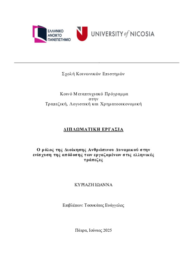 ΚΥΡΙΑΖΗ ΙΩΑΝΝΑ-Ο ρόλος της Διοίκησης Ανθρώπινου Δυναμικού στην ενίσχυση της απόδοσης των εργαζομένων στις ελληνικές τράπεζες