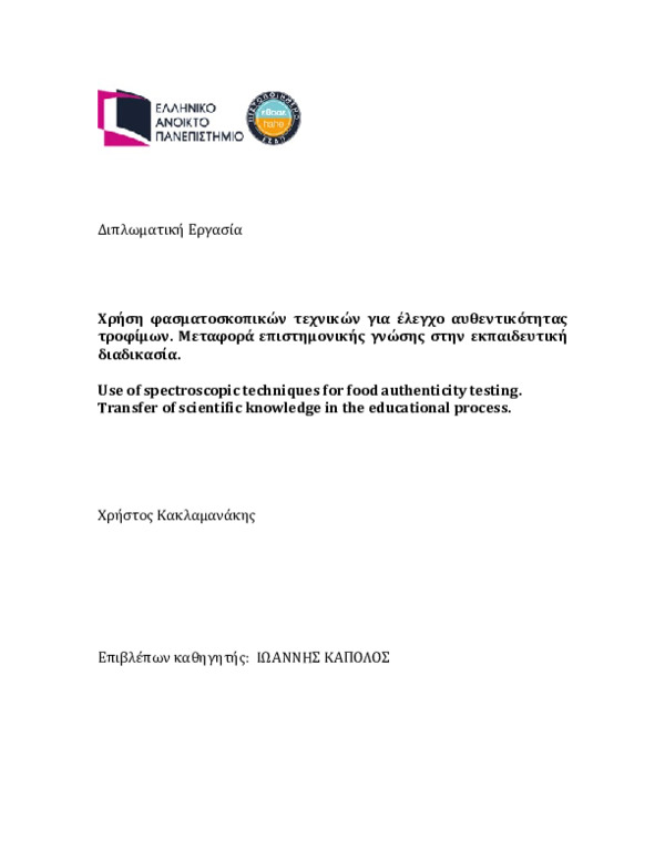 Use of spectroscopic techniques for food authenticity testing. Transfer of scientific knowledge in the educational process. (Αγγλική)