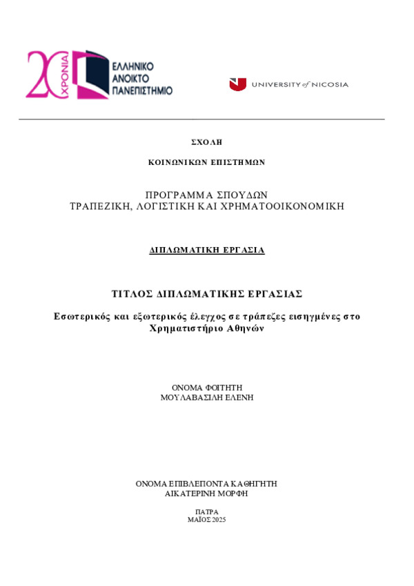 Εσωτερικός και εξωτερικός έλεγχος σε τράπεζες εισηγμένες στο Χρηματιστήριο Αθηνών