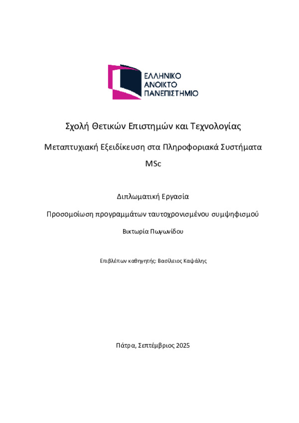 Περιγραφή: Πωγωνίδου Βικτωρία-ΠΛΣ-Προσομοίωση προγραμμάτων ταυτοχρονισμένου συμψηφισμού.pdf (pdf) Book Reader