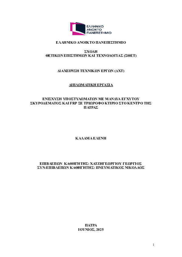 (FRP – Fiber Reinforced Polymers). Στόχος της εργασίας είναι η συγκριτική
