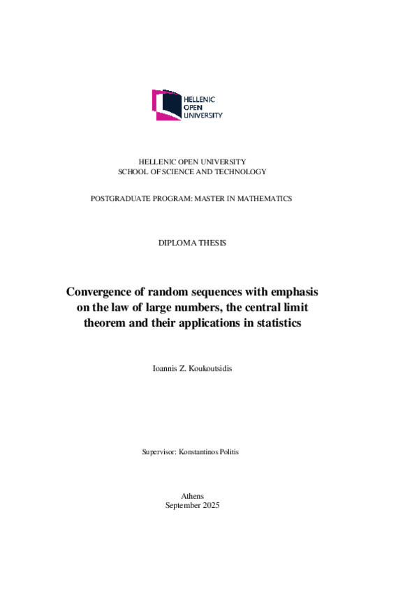 Σύγκλιση τυχαίων ακολουθιών με έμφαση στο νόμο των μεγάλων αριθμών, το κεντρικό οριακό θεώρημα και τις εφαρμογές τους στη στατιστική (Ελληνική)