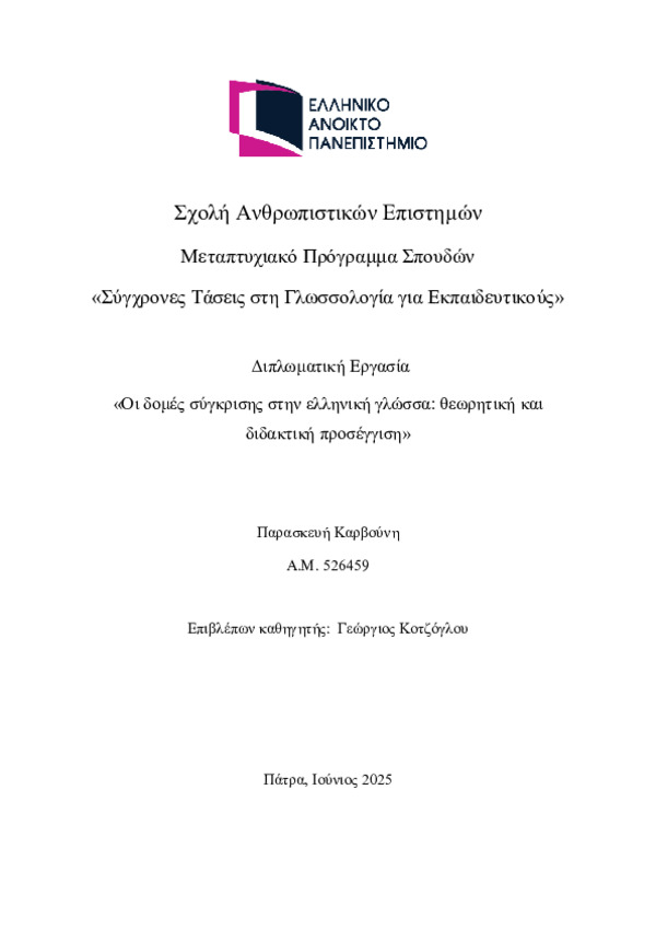 Η εργασία αυτή εξετάζει τις δομές σύγκρισης στην ελληνική γλώσσα, με εστίαση στον