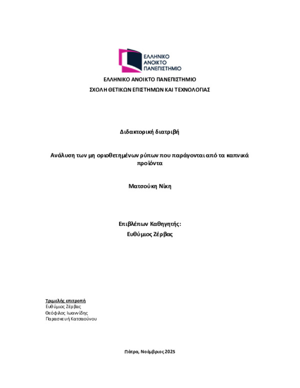 Ανάλυση των μη οριοθετημένων ρύπων που παράγονται από τα καπνικά προϊόντα