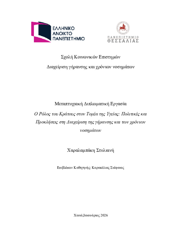 The Role of the State in the Health Sector: Policies and Challenges in the Management of Ageing and Chronic Diseases [Αγγλική]