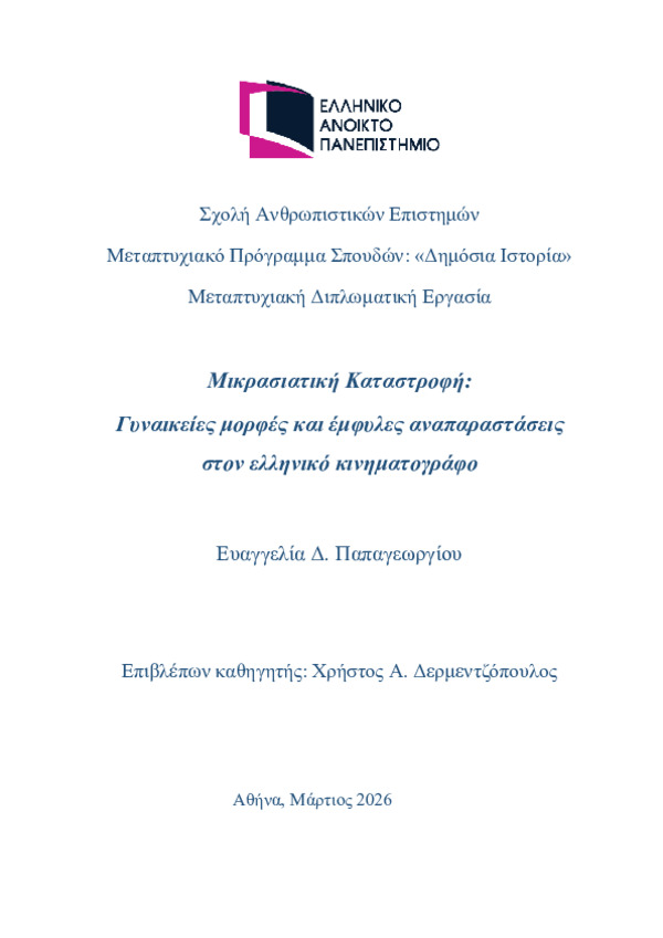 Asia Minor Catastrophe: Female figures and gender representations in Greek cinema [Αγγλική]