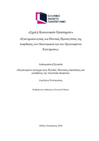Περίληψη (Abstract): Η παρούσα διπλωματική εργασία εξετάζει το φαινόμενο του οργανωμένου εγκλήματος στην Ελλάδα, με έμφαση στις ποιοτικές του διαστάσεις και στις μεταβολές που έχουν σημειωθεί κατά την τελευταία δεκαετία. Στόχος της είναι η κατανόηση της δυναμικής και της προσαρμοστικότητας των εγκληματικών οργανώσεων μέσα σε ένα μεταβαλλόμενο κοινωνικό, οικονομικό και τεχνολογικό περιβάλλον, καθώς και η αξιολόγηση των...