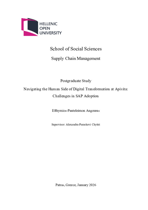 Περίληψη (Abstract): Ο σακχαρώδης διαβήτης τύπου 1 είναι μια χρόνια νόσος που απαιτεί συνεχή διαχείριση και επηρεάζει σημαντικά την ποιότητα ζωής των ατόμων που ζουν με αυτήν. Πέρα από τις ιατρικές προκλήσεις, τα άτομα με σακχαρώδη διαβήτη τύπου 1 συχνά αντιμετωπίζουν κοινωνικό στίγμα και στερεότυπα που επηρεάζουν την ψυχολογική τους ευημερία και την κοινωνική τους ένταξη. Σκοπός της παρούσας βιβλιογραφικής ανασ...