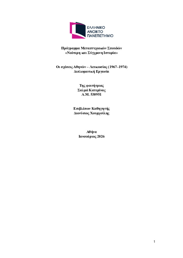 Athens–Nicosia Relations (1967–1974) [Αγγλική]