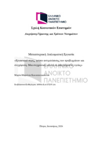 Περίληψη (Abstract): Το εργασιακό στρες είναι ένα πολυπαραγοντικό φαινόμενο με ψυχολογικές και σωματικέςεπιπτώσεις, το οποίο επηρεάζεται τόσο από τις συνθήκες εργασίας, όσο και από τουςατομικούς μηχανισμούς προσαρμογής. Οι στρατηγικές αντιμετώπισης ή αποφυγής τουπροβλήματος και η συγχώρεση φαίνεται να σχετίζονται με το εργασιακό στρες,λειτουργώντας ως πιθανοί προστατευτικοί παράγοντες. Υπάρχει ωστόσο περιορισμένηέρευν...