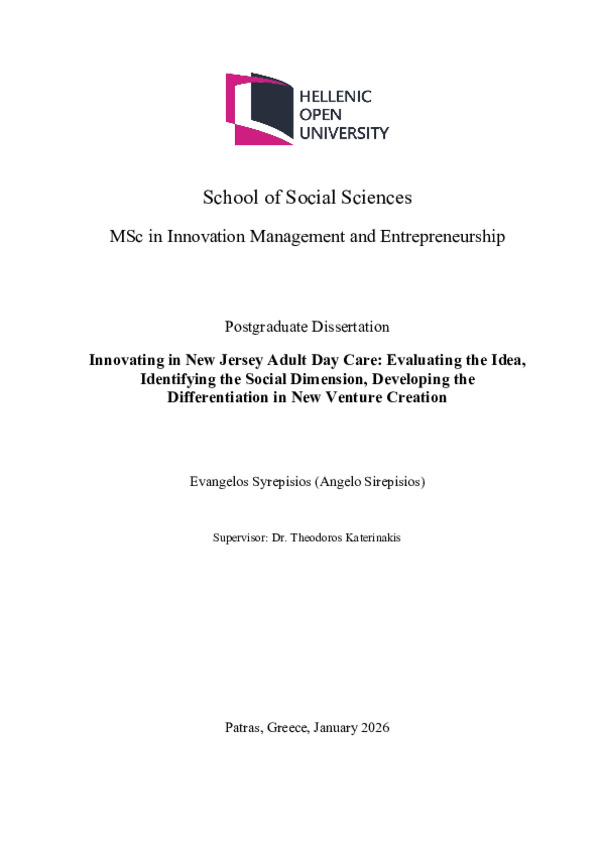 Καινοτομώντας στη Φροντίδα Ημερήσιας Φροντίδας Ενηλίκων στο Νιου Τζέρσεϊ: Αξιολόγηση της Ιδέας, Προσδιορισμός της Κοινωνικής Διάστασης, Ανάπτυξη της Διαφοροποίησης στη Δημιουργία Νέων Επιχειρήσεων [Ελληνική]