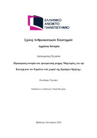 Περίληψη (Abstract): Η παρούσα διπλωματική εργασία διερευνά τη σχέση μεταξύ προφορικής ιστορίας και τραυματικής μνήμης, εστιάζοντας στις εμπειρίες των κατοίκων της περιοχής Εμπάρου Κρήτης κατά την περίοδο της Κατοχής και του Εμφυλίου.Η έρευνα προσεγγίζει ιστορικά γεγονότα —όπως η κύκλωση της 6ης Αυγούστου 1944, η Μάχη της Μαγερεύτρας και η κρατική καταστολή— και τον μετασχηματισμό τους σε τραυματική μνήμη. Αξιοποιώντα...