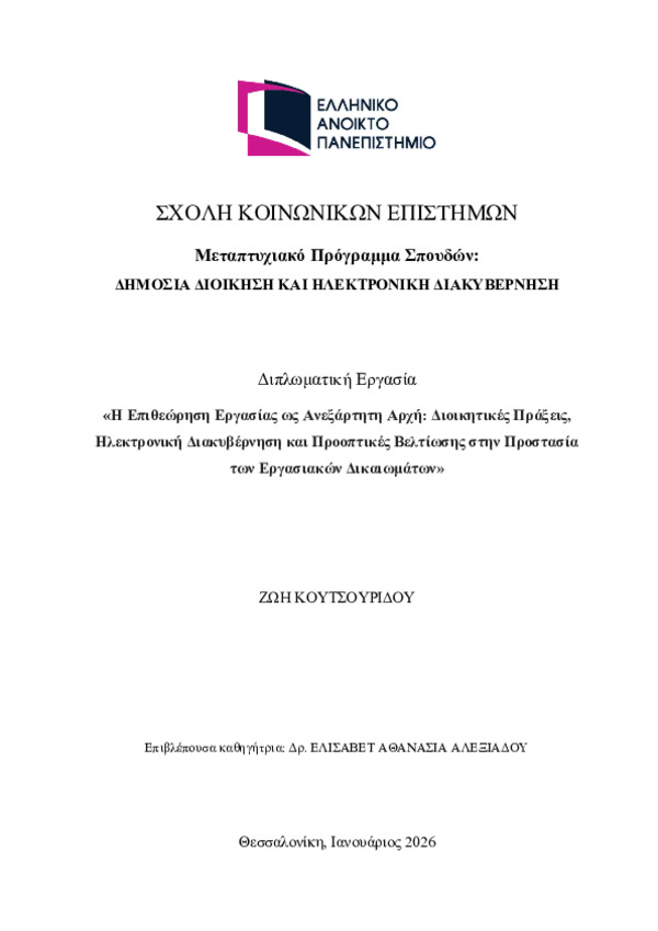 The Labor Inspectorate as an independent Authority: Administrative Acts, E-Governance and Prospects for improvement in the protection of labor rights in Greece [Αγγλική]