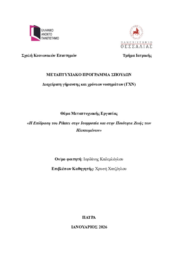 The Effect of Pilates on Balance and Quality of Life in the Elderly. [Αγγλική]