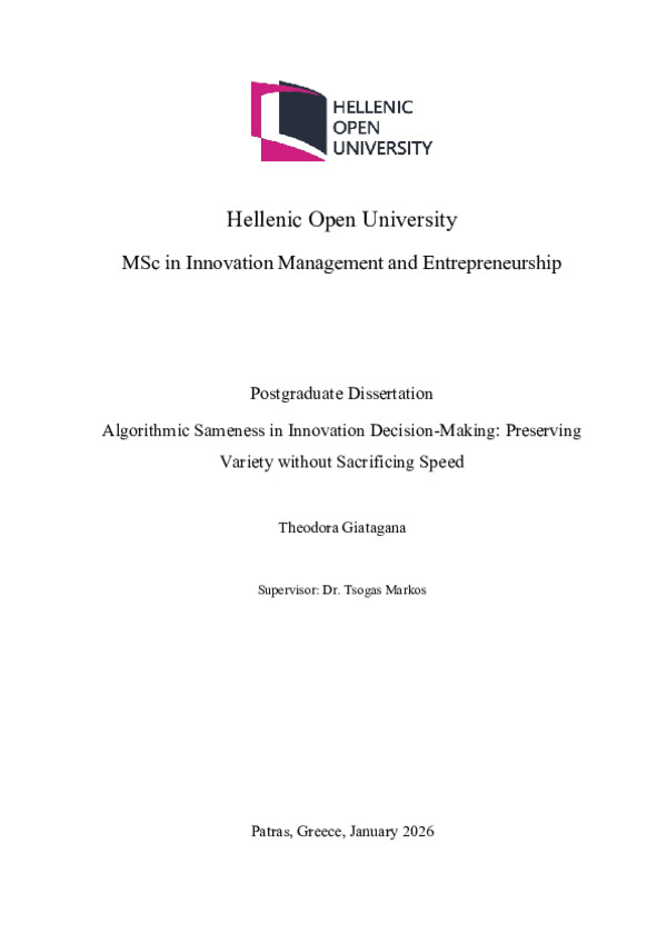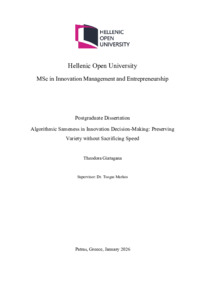 Περίληψη (Abstract): The increasing adoption of large language models (LLMs) in organisational settings is transforming how innovation-related decisions are prepared, framed, and justified. In innovation management, LLMs are increasingly used across ideation, screening, proposal development, and portfolio prioritisation, promising greater speed, structure, and analytical support. However, when such tools are adopted a...