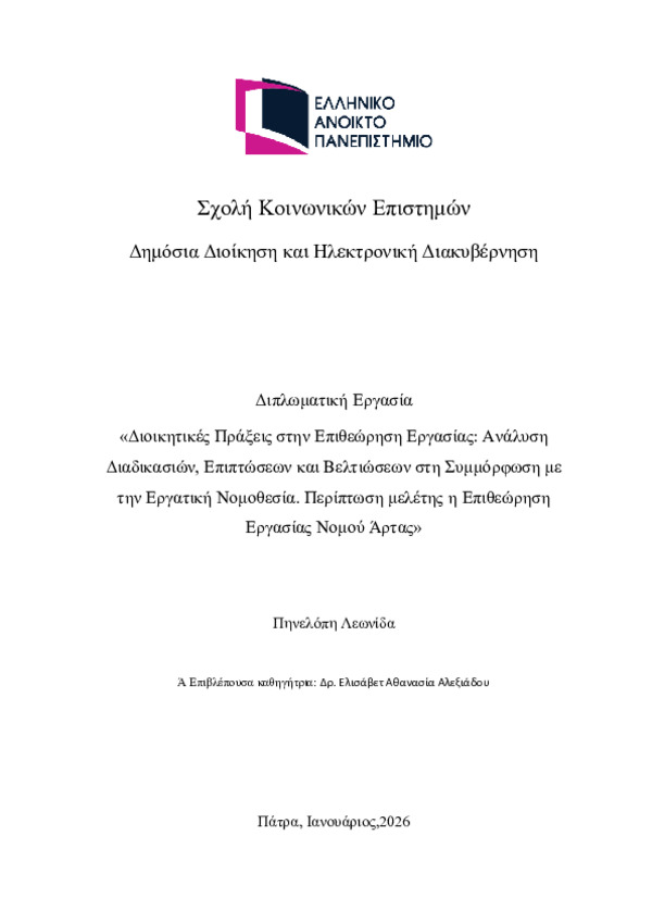 Administrative Acts in the Labor Inspection: Analysis of Procedures, Impacts, and Improvements in Compliance with Labor Law. Case Study: The Labor Inspectorate of Arta Prefecture [Αγγλική]
