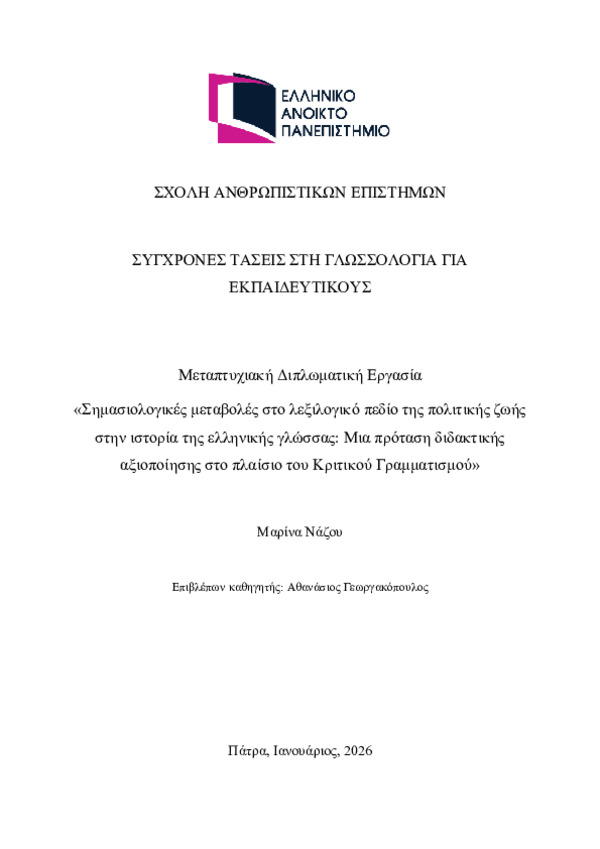 Semantic changes in the lexical field of political life in the history of the Greek language: A proposal for teaching use in the context of Critical Literacy [Αγγλική]