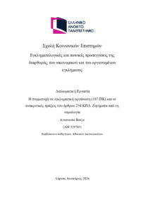 Περίληψη (Abstract): Η παρούσα διπλωματική εργασία εξετάζει τη δικαστική διαφθορά ως ειδικό πεδίο εγκληματολογικής διερεύνησης, εστιάζοντας στα αίτια, την έκταση και τις πολιτικές πρόληψης και αντιμετώπισης στην Ελλάδα, σε συνάρτηση με τα πρότυπα του Συμβουλίου της Ευρώπης και της Ευρωπαϊκής Ένωσης. Η δικαστική διαφθορά ορίζεται ως η κατάχρηση εξουσίας εντός του συστήματος απονομής δικαιοσύνης, μέσω πράξεων ή παραλείψ...