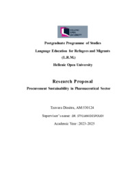 Περίληψη (Abstract): This thesis examines the growing importance of procurement sustainability in the pharmaceutical sector, an industry characterised by strict regulatory requirements, globalised supply chains and heightened environmental and social responsibilities. It explores how sustainability has evolved into a strategic priority for pharmaceutical companies, influencing supply resilience, regulatory compliance,...