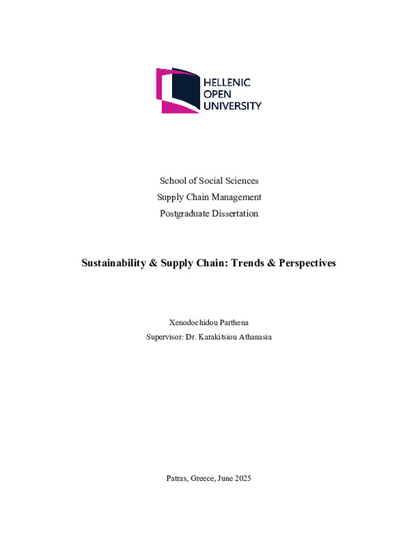 Περίληψη (Abstract): In recent years, sustainability has moved from a peripheral concern to a central condition of how global supply chains are organised, justified, and governed. This thesis examines Sustainable Supply Chain Management (SSCM) not as a stable managerial model, but as an ongoing process shaped by regulatory pressure, market expectations, and recurring disruption. Rather than treating sustainability as ...