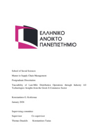 Ιχνηλασιμότητα των Λειτουργιών Διανομής Τελευταίου Μιλίου μέσω Τεχνολογιών Βιομηχανίας 4.0: Πληροφορίες από τον Ελληνικό Τομέα Ηλεκτρονικού Εμπορίου [Ελληνική]