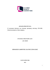 Περίληψη (Abstract): Η παρούσα εργασία εξετάζει τις ελληνοαμερικανικές σχέσεις από τον Ιούλιο του 1974 έως τον Οκτώβριο του 1981, από την κυπριακή κρίση και την πτώση της δικτατορίας έως την άνοδο του ΠΑΣΟΚ στην εξουσία, αναλύοντας τις διπλωματικές, στρατιωτικές και πολιτικές τους διαστάσεις στο πλαίσιο του Ψυχρού Πολέμου. Προηγείται συνοπτική αναδρομή στην πορεία των ελληνοαμερικανικών σχέσεων από το Δόγμα Τρούμαν έω...