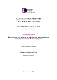 Περίληψη (Abstract): Τα μέσα κοινωνικής δικτύωσης αποτελούν βασικό εργαλείο προώθησης και διαφήμισης προϊόντων και υπηρεσιών των επιχειρήσεων (Ashley & Tuten, 2015), ενώ παράλληλα λειτουργούν ως δυναμικά περιβάλλοντα αλληλεπίδρασης και επικοινωνίας με τους καταναλωτές (Avnishkumar & Nulkar, 2022). Η ενασχόληση των καταναλωτών με τα μέσα κοινωνικής δικτύωσης συμβάλει στη διαμόρφωση του ρόλου τους ως ενεργών υποστηρικτώ...