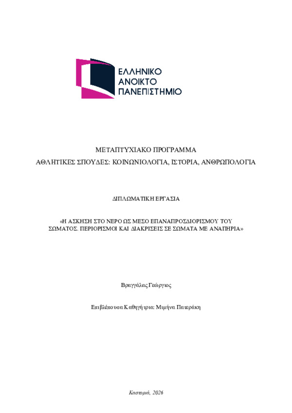 Exercise in Water as a Means of Redefining the Body: Constraints and Discrimination Against Bodies with Disabilities [Αγγλική]
