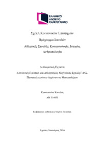 Περίληψη (Abstract): Το φύλο επηρεάζει ιστορικά την πρόσβαση στον αθλητισμό, τη διαμόρφωση ταυτοτήτων όπως επίσης και τις μεθόδους με τις οποίες η σύγχρονη κοινωνία αντιλαμβάνεται τα δυο φύλα αθλητών. Η εν λόγω εργασία μελετά τις έμφυλες διαφορές στα σπορ, τα στερεότυπα που τις ενισχύουν, τις εξελίξεις σε κοινωνικό επίπεδο με απώτερο σκοπό την προώθηση της ισότητας, καθώς και την προσβασιμότητα των γυναικών στον αθλητ...