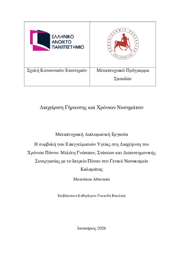 The Contribution of Healthcare Professionals to Chronic Pain Management: A Study of Knowledge, Attitudes, and Interdisciplinary Collaboration with the Pain Clinic at the General Hospital of Kalamata. [Αγγλική]