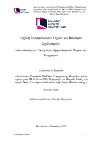 Περίληψη (Abstract): Η παρούσα διπλωματική εργασία πραγματεύεται την διερεύνηση ψηφιακών μεθόδων τεκμηρίωσης μνημείων, μέσω των τεχνολογίων τρισδιάστατης μοντελοποίησης, συστημάτων γεωπληροφορικής και μοντέλων δομικών πληροφοριών. Η εφαρμογή τους βρίσκεται στον Ναό της Αγίας Σοφίας στην Θεσσαλονίκη, στον Τάφο του Ατρέα στις Μυκήνες και στον Ναό του Επικούριου Απόλλωνα στις Βάσσες, αντίστοιχα. Πρόκειται για τρία μνημεί...