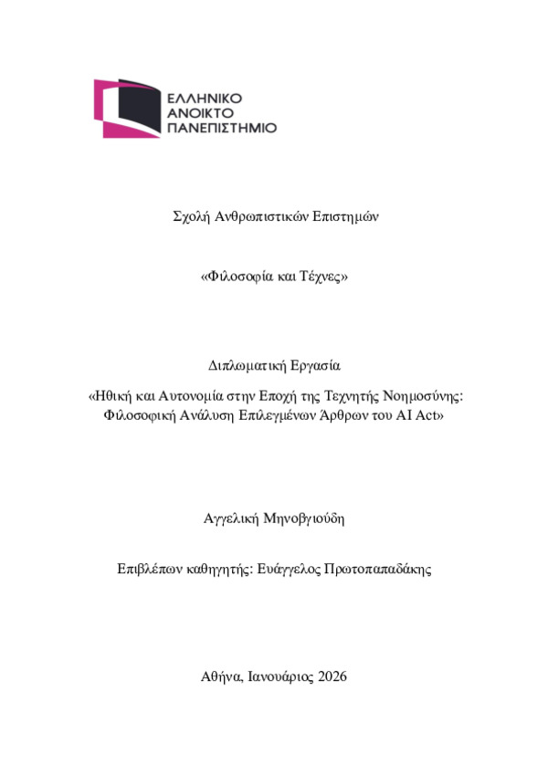 "Ethics and Autonomy in the Age of Artificial Intelligence: A Philosophical Analysis of Selected Articles of the AI Act” [Αγγλική]