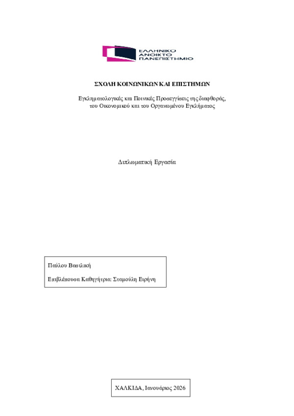 Εγκληματολογικές και Ποινικές προσεγγίσεις της διαφθοράς, του οικονομικού και του οργανωμένου εγκλήματος (ΠΕΔ)