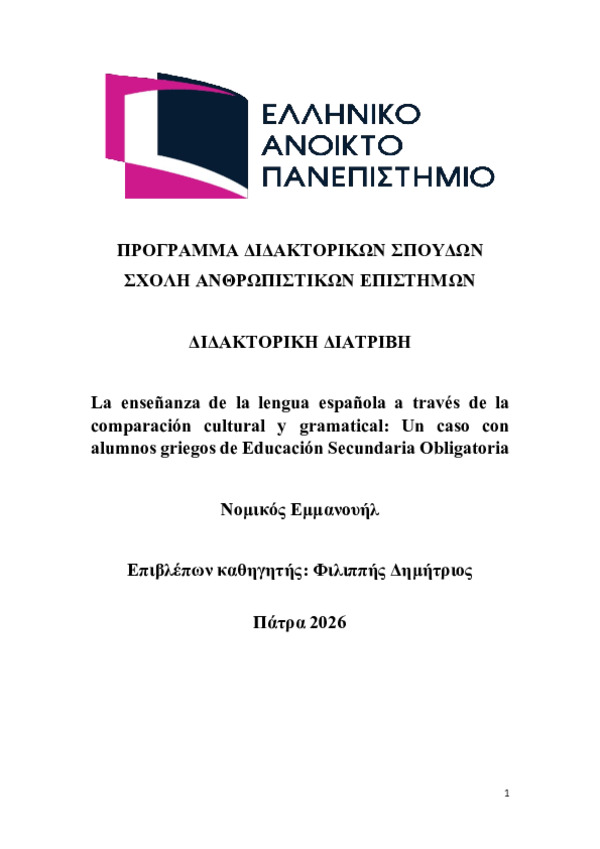 Η διδασκαλία της Ισπανικής γλώσσας μέσα από τη σύγκριση πολιτισμικών και γραμματικών φαινομένων: Μια έρευνα με Έλληνες μαθητές της Υποχρεωτικής Δευτεροβάθμιας Εκπαίδευσης [Ελληνική]