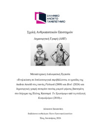 Περίληψη (Abstract): Η παρούσα διπλωματική εργασία με τίτλο «Ενηλικίωση σε δυσλειτουργικά περιβάλλοντα, οι ηρωίδες της Andrea Arnold στις ταινίες Fishtank (2009) και Bird (2024) και δημιουργική γραφή σεναρίου ταινίας μικρού μήκους βασισμένη στο διήγημα της Ελένης Κατσαμά Το Χρυσόψαρο από τη συλλογή Κοσμοδρόμιο (2010)» διερευνά την αποτύπωση των ηρωίδων των ταινιών Fishtank και Bird, δύο έφηβων ...