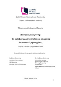 Περίληψη (Abstract): Η πολλαπλή σκλήρυνση (ΠΣ) αποτελεί μια χρόνια, απομυελινωτική και νευροεκφυλιστική νόσο του κεντρικού νευρικού συστήματος, με πολύπλοκο παθοβιοχημικό υπόβαθρο που συνδυάζει γενετικούς, επιγενετικούς και περιβαλλοντικούς παράγοντες. Η κατανόηση των μηχανισμών της φλεγμονής, της ανοσολογικής δυσλειτουργίας και της απώλειας της μυελίνης είναι καθοριστική για την ανάπτυξη νέων διαγνωστικών στρατηγικών...