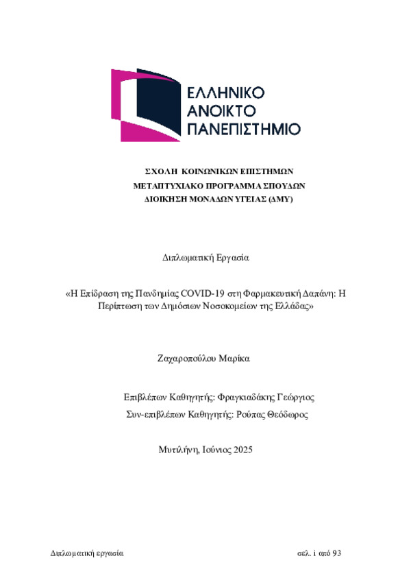 The Impact of the COVID-19 Pandemic on Pharmaceutical Expenditure: The Case of Public Hospitals in Greece [Αγγλική]