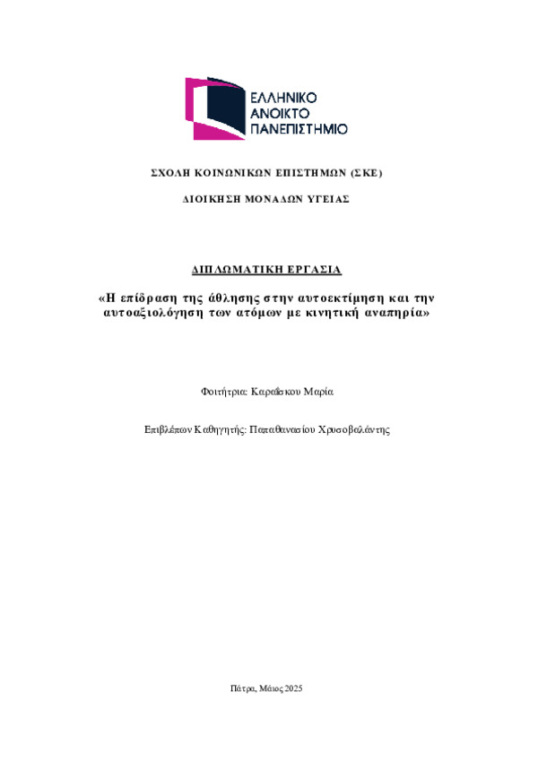 Η επίδραση της άθλησης στην αυτοεκτίμηση και την αυτοαξιολόγηση των ατόμων με κινητική αναπηρία.