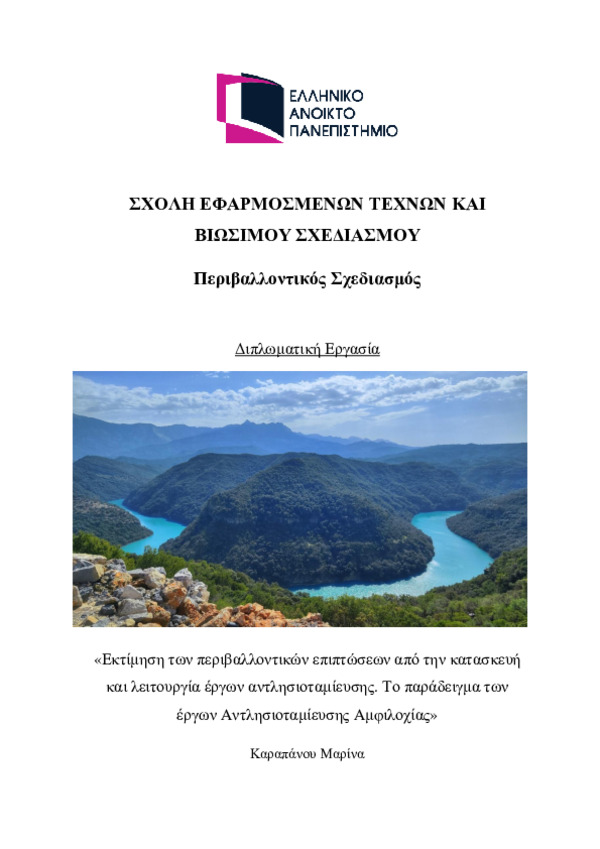 Assessment of the Environmental Impacts from the Construction and Operation of Pumped Storage Projects: A Case Study of the Amfilochia Pumped Storage Projects [Αγγλική]