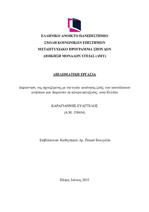Investigation of the health-related quality of life of unaccompanied minors residing in accommodation centers in Greece [english]